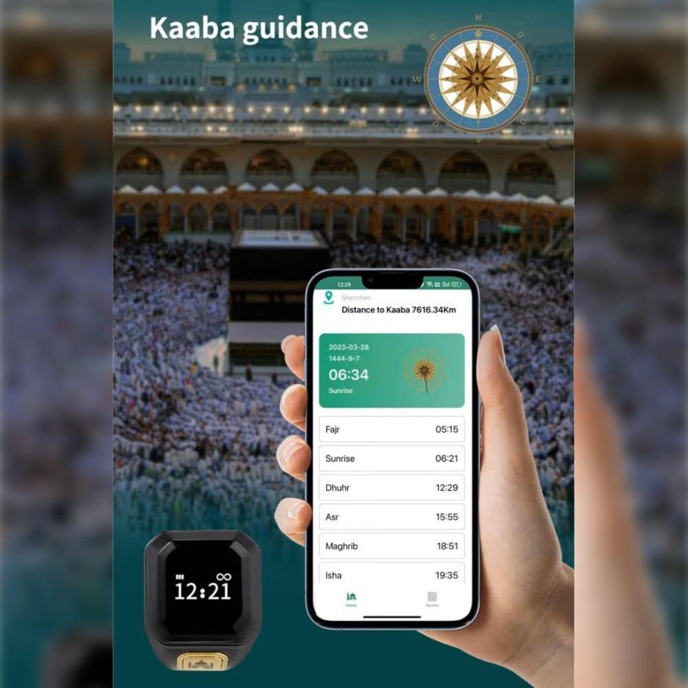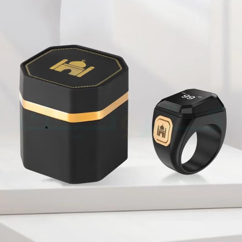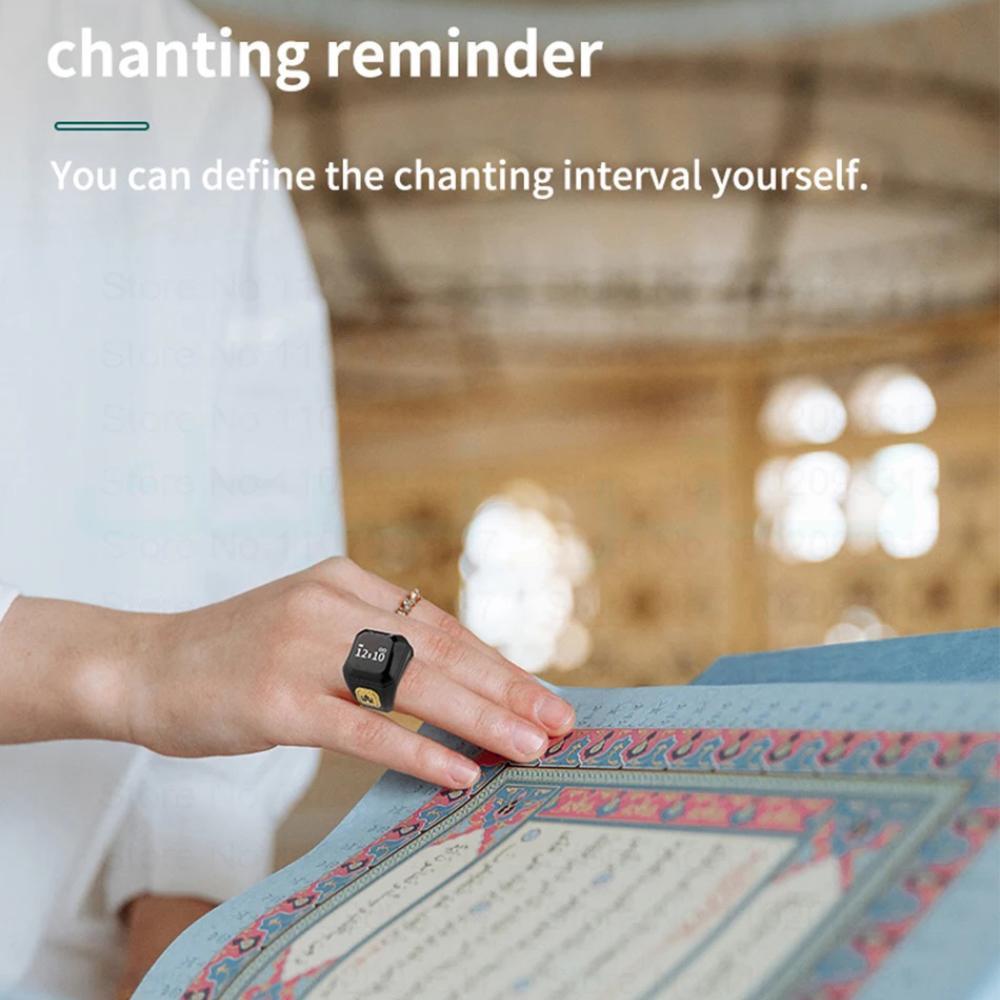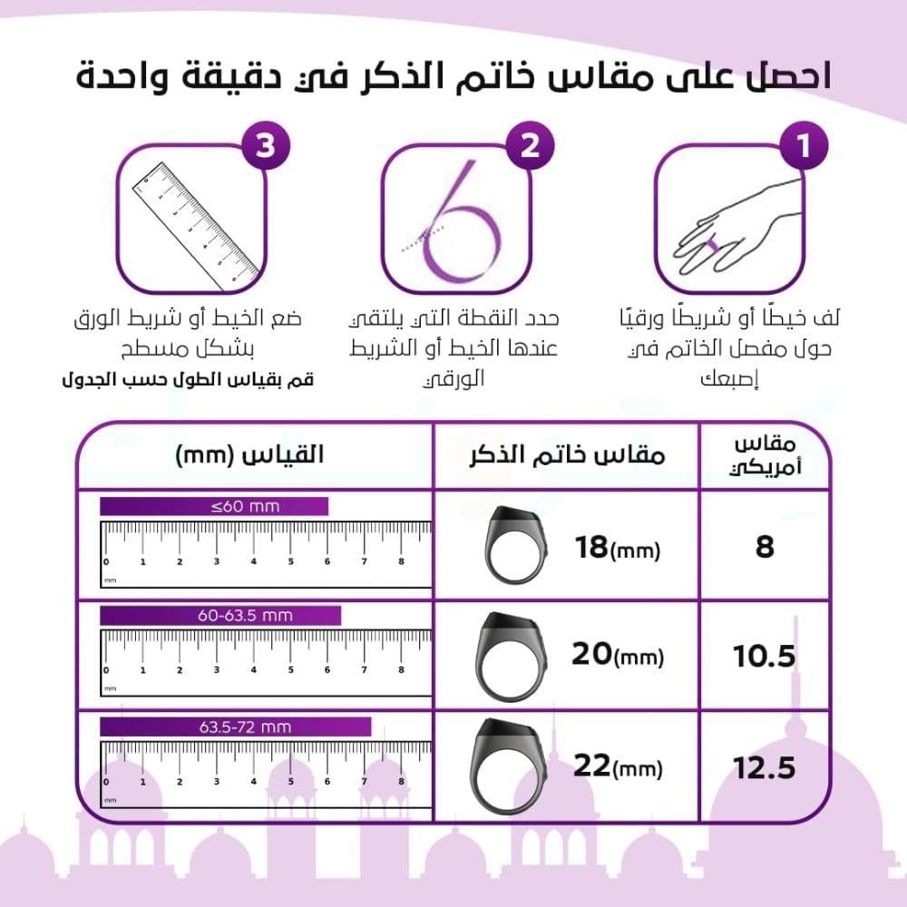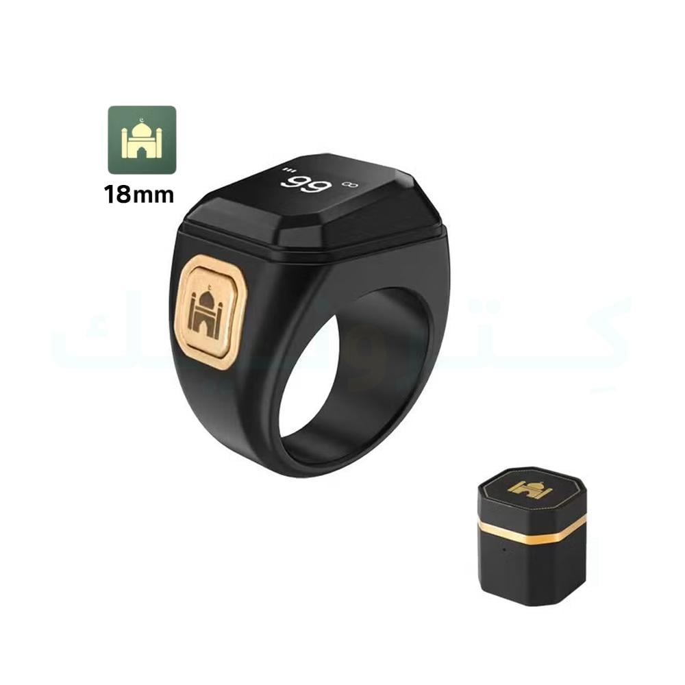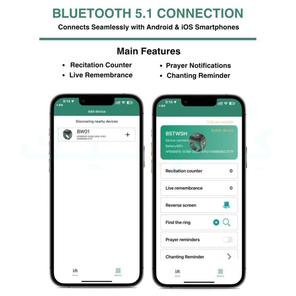 بستوش خاتم تسبيح ذكي من خليط معدني، مع اتصال بلوتوث، وتذكير بالاهتزاز، وعداد تسبيح و 5 تذكيرات يومية للصلاة